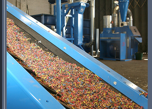 Our cable granulation system consists of a pre-shredder from which material is fed into a granulator via a feeding component. The conveyor is equipped with a magnet to remove the ferrous component. The granulated material is then processed by a pulverising mill and is sorted out via an air separator. The results speak for themslves - 99.5% clean copper.